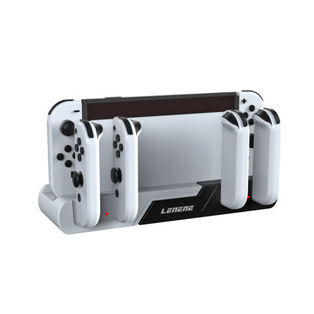 which does not occupy the USB2.0 interface on the original base when using the product. This port is used for external wired gamepads to play games. When all four Switch/ Switch OLED MODEL (Joy-Con) L/R small gamepads are charging, the maximum output current of this output port is 500MA~800MA. When the total load current of all external handles of this product exceeds 1500MA, the output will be automatically turned off to achieve protection. Therefore, it is not recommended to charge digital products with high current charging externally at US2.0 port.